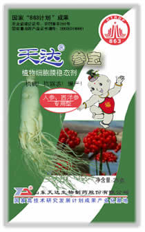 [性能] ①活化細胞抗逆基因,能顯著增強人參[西洋參]等根莖藥材對逆境如干 旱、霜凍等的抵抗能力;②能誘導(dǎo)人參[西洋參]等根莖藥材顯著提高其自身的抗病能力。與相應(yīng)的殺菌劑混合噴施或交替噴施有顯著增效作用?纱鏆⒕鷦┯昧50%;③修復(fù)受損細胞,恢復(fù)生長活力;對倒春寒造成的凍害、藥害的緩解效果突出;④活化細胞生長基因,協(xié)調(diào)生長,促發(fā)須根,促進根部膨大,改善品質(zhì),增產(chǎn)效果顯著。