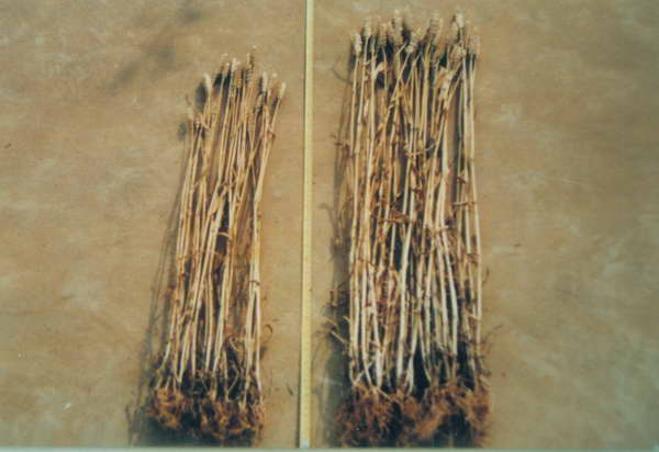 國家農(nóng)業(yè)部注溝巴西旱稻 試驗基地巴西旱稻出苗25 天對比情況。 1999年6月27號
