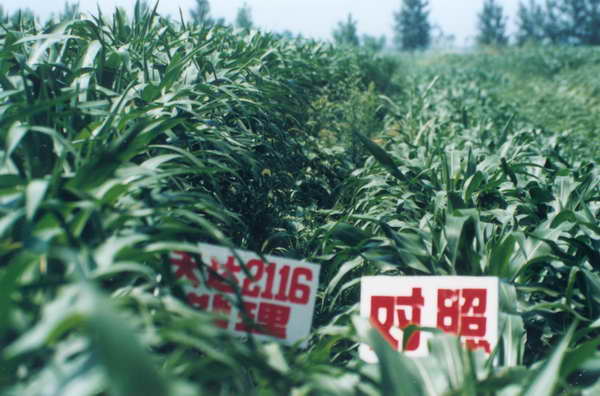陜西眉縣金渠鎮(zhèn)第二坡村 “天達2116”在玉米上的 試驗,處理比對照增 產(chǎn)24.9%。 1998年10月3日