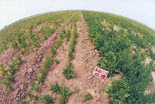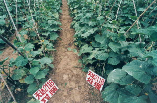 主頁-->產(chǎn)品功效 -->“天達(dá)2116”田間試驗(yàn)對比照片---蔬菜瓜果