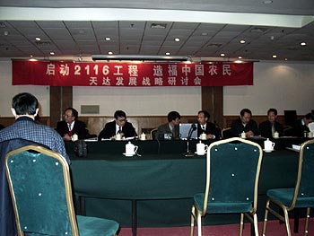 [本站消息:記者曹文悅 劉國安 2月28日下午2:30 北京·中國科技會堂報道] 作為這次大會的延續(xù),天達集團的當家人張世家以其山東人特有的熱情和誠懇邀請了中科院、中國工程院、農(nóng)業(yè)部、林業(yè)部、科技部、國務院發(fā)展研究中心、山東大學生命科學院等單位的專家、學者、院士、官員等50多人。在一樓會議廳內為天達新產(chǎn)品全面推向市場和天達公司的發(fā)展戰(zhàn)略做進一步論證和研討。