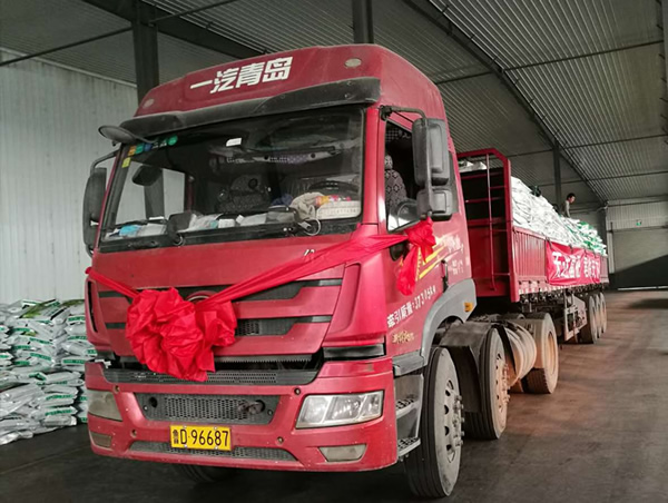 爆竹聲中歡送第一批菌肥產(chǎn)品出廠