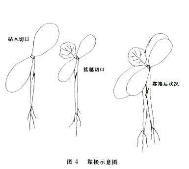 操作時,棚內要設置灌滿水的水盆或在苗床外緣開溝灌水,以保持棚內濕度達到95%以上。棚內溫度應維持在25-28℃,如果棚內溫度過高,可覆蓋草苫或遮陽網遮蔭降溫。 具體操作時,先用特制的竹簽刀,挑除南瓜苗的生長點,再用刀片從子葉節(jié)下0.5厘米處自上向下斜切,切口長0.6厘米,切口深達根頸的1/2。黃瓜苗從子葉節(jié)下2厘米處自下向上斜切,切口長0.6厘米,切口深達根頸的3/5-2/3。2株瓜苗切好后,將黃瓜苗切口掛在南瓜苗切口上,黃瓜真葉壓在南瓜2片子葉的上面,切口對齊,用嫁接夾夾牢(黃瓜苗在夾口內側,南瓜苗在外側)。嫁接操作過程中,注意刀片要清潔,不沾染泥水,以免感染病菌;操作要仔細,手用力要輕,不可損傷瓜苗,引起瓜苗組織壞死。 ④ 嫁接苗栽植:嫁接苗要做到隨嫁接隨栽植,隨扣小棚。按10厘米行距開5厘米深溝,溝內先澆水,按10厘米株距放苗,使黃瓜根離開南瓜根0.5厘米遠,使瓜苗接口高于地面2厘米以上,然后覆土穩(wěn)苗,再次澆透水。水下滲后覆干營養(yǎng)土,抹平床面,幼苗栽好后成正方形排列,以便于將來切塊。苗床栽完后立即扣棚膜、嚴密封閉,保持苗床濕度。 。7) 嫁接苗假植于苗床后的管理 為保證嫁接苗成活,對嫁接苗應搞好保溫、保濕、遮蔭、防病等管理。 ① 保溫:嫁接苗栽植后的1-3天,白天溫度維持25-30℃,夜晚18-20℃,有利于接口產生愈合組織、提高成活率;3天后白天降溫至25-28℃,夜晚降至14-16℃,防止幼苗徒長,利于雌花芽分化。斷根后白天溫度提高至28-30℃,夜晚降至10-16℃,大溫差管理,有利于培養(yǎng)壯苗和促進雌花芽分化。定植前3-5天,白天溫度降至20-23℃,夜晚降至10-12℃。低溫煉苗,以備定植。 、 保濕與通風:嫁接苗栽之后,開始3天不通氣,保持空氣濕度,防止幼苗萎蔫。3天后開始通風,逐漸降低苗床濕度,鍛煉幼苗。通風要在嫁接操作結束時,隨即大開外棚風口,盡快降低棚內濕度。3天后小棚開始通風,注意!要先開小口,并注意風口與大棚風口錯開,防止冷風直吹瓜苗。4天后小棚通風口逐漸加大,第6至7天時,撤掉小棚棚膜,大棚通風口適當減小,維持適宜溫度。 ③ 遮蔭:遮蔭只可遮擋直射強光,盡力讓嫁接苗多見散射光,只要瓜苗不發(fā)生萎蔫現象,遮蔭時間越短越好。一般遮蔭從上午9時左右開始到下午4時前停止,早晚讓其多見陽光,遮蔭上午只在拱棚東面覆苫,中午只在拱棚上面覆苫,下午只在拱棚西面覆苫,讓幼苗多見散射光。遮蔭時間應逐日縮短,到第六至七天不再遮蔭。使瓜苗盡量多見光,苗子健壯,成活率高。 、 噴藥:撤去小拱棚棚膜后,立即用1000倍“天達-2116”壯苗靈+3000倍天達裕豐+3000倍天達有機硅藥液細致噴灑幼苗,提高幼苗抗逆性,防止病菌感染,誘發(fā)病害。 、 澆水、切塊、斷根:噴藥后隨即灌透水,切塊,切塊要適當深切,切塊的同時進行黃瓜苗斷根。斷根要強調在7-10天內斷完,以防止黃瓜根莖增粗,傷口過大。斷根自接口下0.3厘米處切斷,為了防止斷根重新愈合長在一起,還須再從地面處把黃瓜的根莖切除。斷根后如果發(fā)生萎蔫現象?蛇m當遮蔭,以提高成活率。嫁接后如果砧木苗萌發(fā)新芽,要及時清除,防止影響接穗生長。